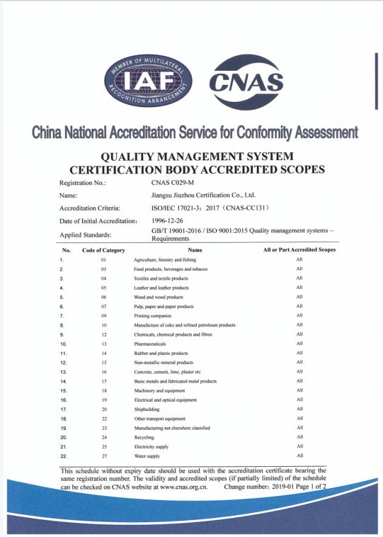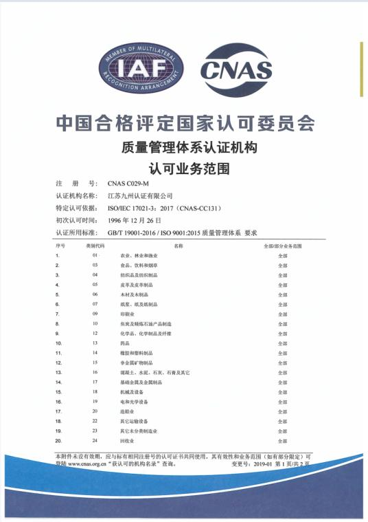 環(huán)境管理體系認可業(yè)務范圍-中文2